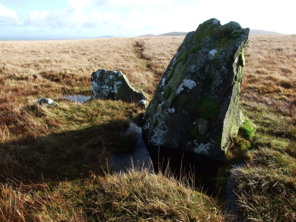 But this place is not only beautiful by night. To the north lies the stretch of coast and seascape around Newport Bay, to the south the Preseli hills. The Preselis are not high, only 536m at their highest point, but they are heath and moor and possess an unexpected wildness. There are no lofty peaks, but the open landscape induces a sort of walking meditation in which, because of this very openness, attention becomes focused on nearby details rather than distant vistas; the quick mid-stride gurgle of a stream running invisibly in the channel it has cut in the peat; patterns of rock and lichen; changes in vegetation; a momentary flash of sky in water collected around the base of a boulder. In the summer there is the constant background of the skylark’s song; a stream of summer consciousness that mingles with the soft scents and changing airs of the moor. Walking up here clears the mind and spirit leaving space to think and feel.