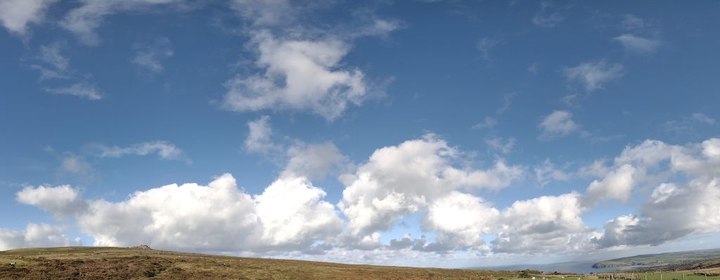 I dropped a hundred feet or so, from the relatively flat top of the hill, down the steep sided valley and the world changed. The mist thinned, making it to appear luminous rather than flat grey. The bluebells began to faintly glow from the verge and birds (pipits and a wheatear I think) could be seen moving along the banks on either side of the road. I was struck by the warmth of the air blowing gently through the van window.