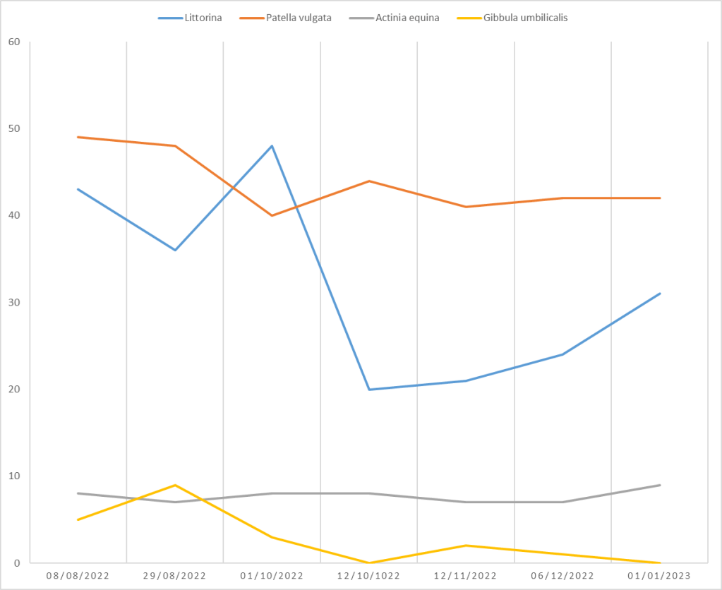 This page is dedicated to rockpool survey results carried out for ‘Pembrokshire Scientific Rockpools Surveys’, and ‘The Rockpool Project’ ( https://www.therockpoolproject.co.uk/ ). The purpose of these surveys is to monitor fluctuations and possible longer term changes in variety and abundance of species.